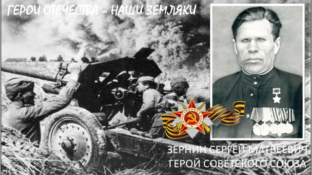 В честь 80-летия Победы 2025 год объявлен в России годом Защитника Отечества. О Героях Великой Отечественной войны – наших земляках. Герой Советского Союза Зернин Сергей Матвеевич (1912 – 1989). В армии с июля, на фронте с ноября 1941 года. Командир орудия 227 артиллерийского полка 70-й стрелковой дивизии 43 армии третьего Белорусского фронта. Отличился 5-9 апреля 1945 года в боях за взятие Кенигсберга: с расчетом своего орудия уничтожил 2 наблюдательных пункта, 2 автомашины с военным грузом, 3 орудия, 4 станковых и ручных пулеметов с расчетами, около 2 рот пехоты противника, способствуя успешному продвижению стрелковых подразделений. В бою 9 апреля, получив ранение, продолжил ведение огня до полного отражения вражеской контратаки. Указом Президиума Верховного Совета СССР от 19 апреля 1945 года сержанту Зернину Сергею Матвеевичу присвоено звание Героя Советского Союза. После войны жил в деревне Крыжановка Чебаркульского района Челябинской области. Работал в колхозе «Первое мая», на Чебаркульском металлургическом заводе. Избирался председателем сельского совета. Награжден орденами Ленина, Отечественной войны 1 степени, медалями «За отвагу», «За оборону Москвы». Умер в 1989 году, похоронен в Крыжановке. Имя Героя присвоено Кундравинской общеобразовательной школе Чебаркульского района. Пресс-служба Магнитогорского гарнизонного военного суда![]() |